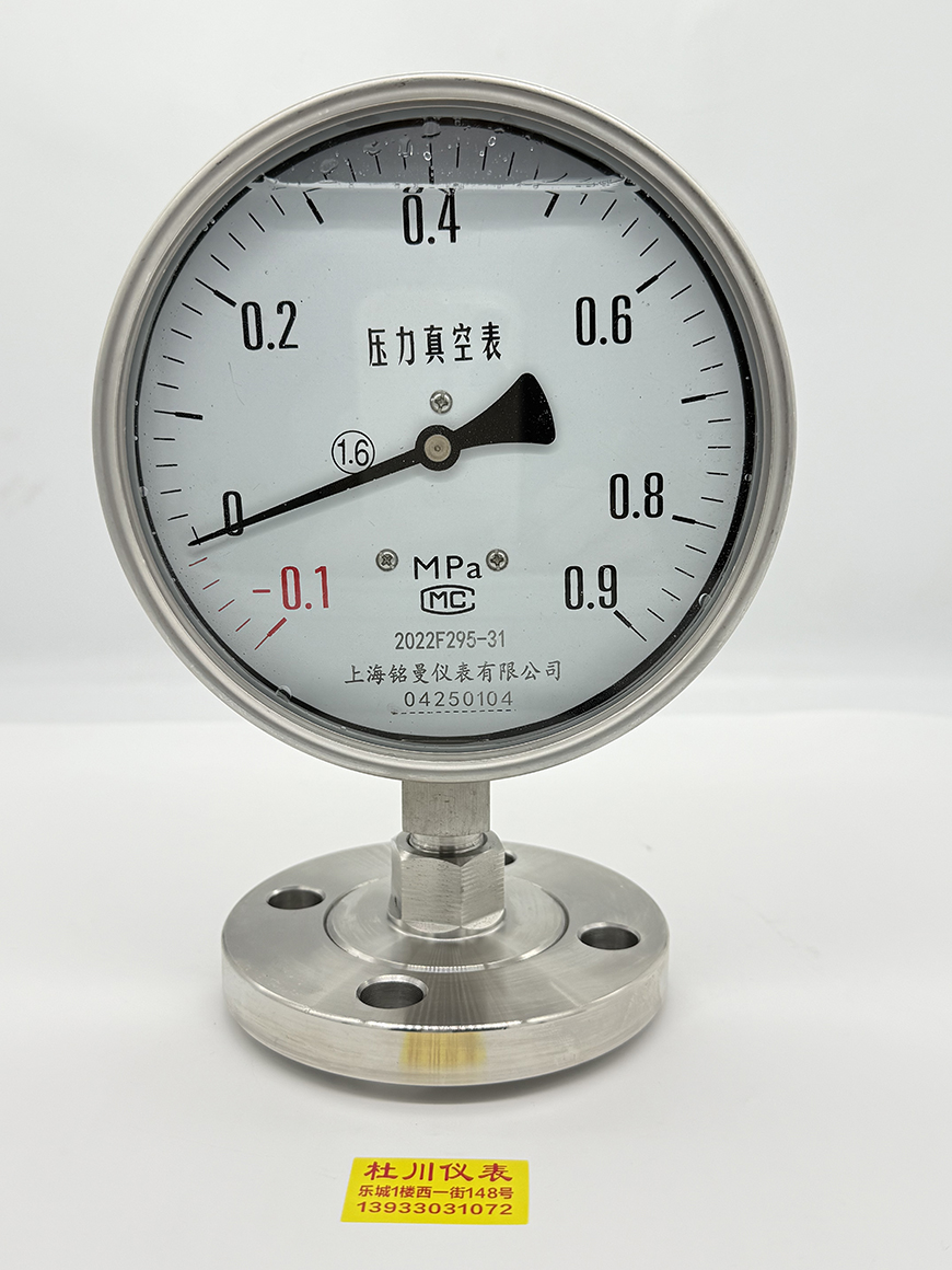 銘曼 耐震隔膜壓力表YNTP150BF,DN25法蘭?四氟,-0.1~0.9mpa ...
